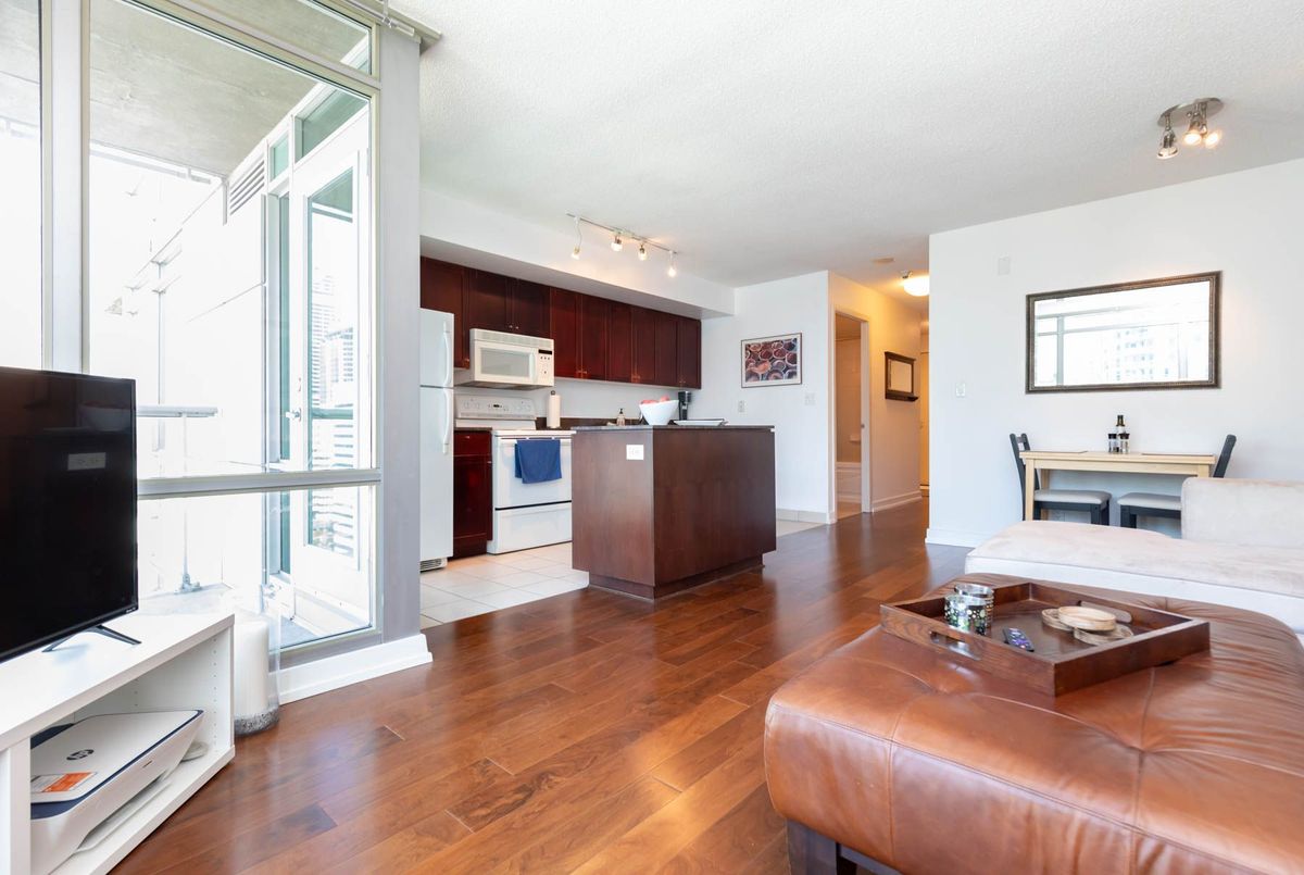 Optimize your downtown living at Optima. Walk to the office, grocery stores, restaurants, Blue Jays, Raptors, Leafs and Harbourfront. Why sit in traffic when you can enjoy life in this well appointed 2 bedroom and den for those work from home days. The large windows ensure every room is sunlit and bright as well as offering glittering night views of the City. The open concept design is perfect for entertaining. Optima has everything you'd expect in a quality building: excellent security, friendly concierge & fantastic amenities: indoor pool, sauna, gym, visitor parking & guest suites.