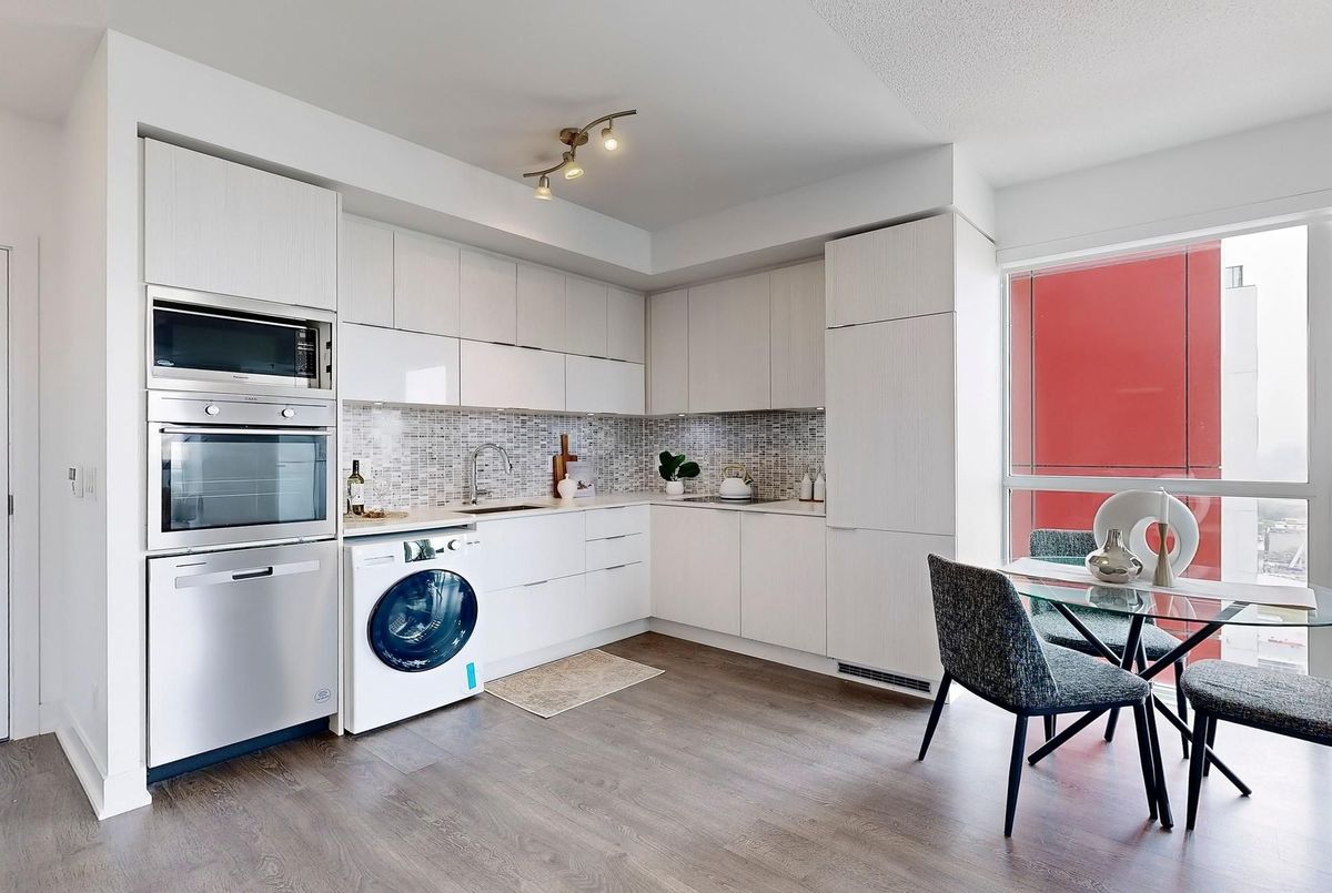 Live at the Iconic Picasso Condos in the Heart of Torontos Entertainment District! This highly sought-after & Freshly Painted 1+Den corner suite features one of the buildings most functional and popular layouts, offering an expansive living area of approximately 19' x 14'5". Enjoy unobstructed skyline views and spectacular sunset and night cityscapes from your open balcony. The large primary bedroom boasts a spacious walk-in closet, while the den offers versatility as a home office or dining space. The gourmet kitchen is equipped with panelled and stainless steel integrated appliances, sleek cabinetry, and modern finishes. High 9' ceilings and floor-to-ceiling windows fill the space with natural light.With a 100 Walk Score, you're steps to top dining, Cineplex, entertainment, shops, libraries, and vibrant city nightlife, with easy TTC access. Luxury amenities include 24-hour concierge, guest suites, rooftop terrace with BBQ, fireplace & hot tub, sports lounge, yoga/pilates studio, billiards room, party room with serving pantry, sauna, and a fully equipped gym.
